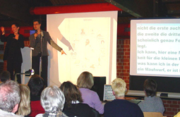 Auch dieses Kofo fand wieder vor „vollem Haus“ statt. Mehr als 150 BesucherInnen waren gekommen: Jugendliche, Erwachsene, Gehörlose, Schwerhörige, Hörende - darunter auch KollegInnen von Hörgeschädigtenschulen. Anja Dietzel schaffte es, das anspruchsvolle Thema für alle Besucher interessant vorzutragen. Alle waren betroffen von den hohen Opferzahlen und den besonderen Risikofaktoren bei hörgeschädigten Kindern. Die Referentin zeigte an Beispielen, wie Eltern und Lehrer vorbeugen können. Hier gibts mehr zu lesen... (der vollständige Bericht als pdf-Dokument) Danke auch an die Dolmetscherinnen von Skarabee und an Gisela Kaul (Schriftdolmetscherin). |