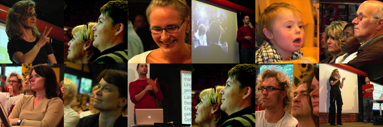 Moderation: Winny Stenner Gebärdensprachdolmetschen: Bastienne Rehe, Maggie Meisen-Jelaš (Skarabee) Schriftdolmetschen: Gisela Kaul, Cornelia Krajewski Fotos: Ingo Langner |