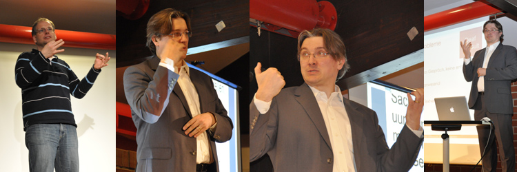 Dieses Kofo traf auf großes Interesse. Viele Gehörlose und Schwerhörige haben Angst um ihren Arbeitsplatz, machen Kurzarbeit oder sind arbeitslos. Junge Leute möchten wissen, was sie beachten müssen, um nach der Ausbildung einen Job zu bekommen. Thomas Worseck begann seinen Vortrag mit einer Bestandsaufnahme: Besonders unter Hörbehinderten ist die Arbeitslosenzahl sehr hoch, so belegen Umfragen bei Gehörlosenverbänden. Offizielle Zahlen gibt es nicht, denn die Agentur für Arbeit zählt nur schwerbehinderte Arbeitslose. Wer Arbeit hat, kann oft trotz guter Qualifikation keine Karriere machen. Der Referent erklärte die typischen Probleme für gehörlose und schwerhörige Menschen und zeigte Möglichkeiten für Lösungen. Thomas Worseck gelang es, dieses Thema für ein breites Publikum verständlich zu erklären. Junge Leute sagten nach der Veranstaltung, dass sie sehr viel gelernt haben – aber auch für „alte Hasen“ waren viele neue Informationen dabei.Christian Aengenheister sorgte mit seiner lockeren und unterhaltsamen Moderation dafür, dass trotz des ernsten Themas gelacht werden konnte. In der Diskussion wurden viele Themen vertieft. Ein Beispiel: Der Moderator fragte: Welchen Rat gibst du jungen Leuten, die nach der Schule eine Arbeit suchen? Thomas Worseck antwortete: Ihr sollt selbst die Initiative ergreifen, selbst aktiv werden. Ihr sollt euch nicht mit „halben Sachen“ zufrieden geben. Ihr sollt Fortbildung machen – soviel wie möglich, denn ohne Fortbildung verliert man schnell seinen Wert auf dem Arbeitsmarkt. Wer den Vortrag noch einmal nachlesen möchte - der Referent hat uns