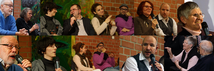 Kofo Essen 12. Dezember 2012Partnerschaften zwischen Hörbehinderten und Hörenden - kann das gutgehen? PodiumsdiskussionReferent: Dr. Oliver Rien (Dipl. Psychologe)Podiumsteilnehmer: Ingrid und Wolfgang Graumann, Anika Kott und Roland Arendt, Lemonia und Thorsten Rose, Ursula und Günther Mönkhoff |