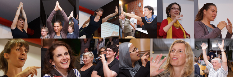 Betty Schätzchen begann ihren Vortrag mit einer Einführung in die verschiedenen Yoga-Techniken. Zum Glück mussten die Zuschauer nicht alle Praktiken ausführen, aber bei einigen einfachen Übungen konnten alle mitmachen. Betty demonstrierte dabei auch, wie sie mit hörgeschädigten Kursteilnehmern arbeitet. Das waren neue Erfahrungen - denn bisher fragten sich viele, wie man diese wohltuenden Entspannungsübungen ohne Hören ausführen kann. Allerdings braucht man dafür auch besonders vorbereitete Yogalehrer, die wissen, was eine Hörbehinderung bedeutet, die bestimmte Schritte einhalten und gut kommunizieren können. Ein Einsatz von Dolmetschern ist nicht sinnvoll. In der anschließenden Diskussion antwortete sie sehr fachkompetent auf alle Fragen, auch über Anpassung der Übungen bei bestimmten Krankheiten wie Asthma oder bei einer Schwangerschaft. Die Fragesteller waren kaum zu bremsen und nach 21 Uhr musste Kamü leider die Veranstaltung beenden. Betty begeisterte die ZuschauerInnen durch ihren ausdrucksstarken Vortrag in DGS und durch ihre offene und sympathische Art. Wenn sie im Ruhrgebiet praktizieren würde, hätte sie jetzt viele neue KursteilnehmerInnen gewonnen :-) |