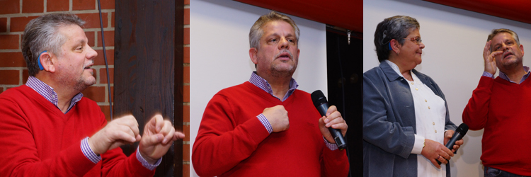 Zu Beginn des Vortrags machte der Referent eine erstaunliche Feststellung: Trotz der technischen und medizinischen Fortschritte haben sich die sozialen Folgen und persönlichen Belastungen für hörbehinderte Menschen kaum verändert. Hörtaktik ist nach wie vor ein hochkomplizierter Verarbeitungsprozess und nur bei guter Konzentration möglich. Verstecktaktik ist eine Vermeidungsstrategie, der vor Überforderung schützt. Wenn man sie bewusst einsetzt, kann sie in bestimmten Situationen eine Hilfe sein. Kommunikationstaktik dagegen bedeutet das aktive Gestalten von möglichst optimalen Bedingungen. Der Vortrag zeigte, dass eine gute medizinische und technische Versorgung hörbehinderter Menschen nicht ausreicht. Unbedingt erforderlich ist eine psychosoziale Unterstützung und kompetente Beratung durch selbstbetroffene Fachleute. Einige Besucher wünschten sich, den Vortrag noch einmal nachlesen zu können, da sie beim vorgelesenen Text Schwierigkeiten hatten, den Überblick zu behalten. Der Referent hat uns deshalb seinen Text zur Verfügung gestellt: