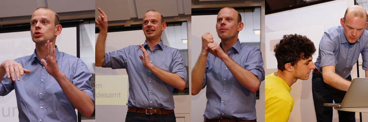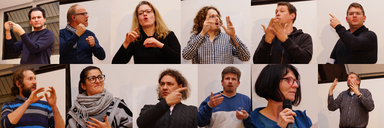 Gebärdensprachdolmetscher im Einsatz. Er dolmetschte alle Beiträge in
