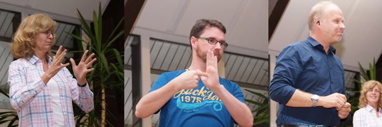 Isa Werth und Uwe Zelle informierten über das neue Projekt der RWTH Aachen und der Universität Köln. Berufserfahrene gebärdensprachkompetente Personen werden zu Mentoren geschult, um Berufseinsteiger bei ihrer beruflichen und persönlichen Entwicklung begleiten zu können. Die Referenten erläuterten Inhalt und Ablauf der Ausbildung, die für die Teilnehmer kostenlos ist. Wichtig ist die Beratung auf Augenhöhe, die so nur durch Betroffene (gleiche Kultur, gleiche Sprache) erreicht werden kann. Mentee kann jeder gehörlose oder schwerhörige Mensch werden, der eine Unterstützung für seinen Berufseinstieg braucht. Mentees werden noch gesucht: