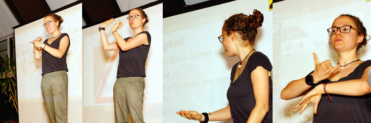 Linda berichtete vor ca. 50 interessierten ZuschauerInnen über ihren Aufenthalt in Mexiko 2015/16. Sie nahm teil an dem entwicklungspolitischen Freiwilligendienst "weltwärts", ihre Entsendeorganisation war bezev (Behinderung und Entwicklungszusammenarbeit e.V.). Bereits mehrere hörbehinderte junge Menschen haben in Ländern Afrikas und Lateinamerikas wertvolle Erfahrungen gesammelt und darüber auch auf dem Kofo berichtet. Linda erklärte zunächst den Begriff der "Permakultur", ein Denkprinzip, für das sie sich sehr interessiert und ihre Entscheidung für Mexiko beeinflusst hat. Nachhaltige Entwicklung im Einklang mit den Ökosystemen der Natur ist der Biologiestudentin wichtig. Ihr Einsatzort in Mexiko war ein Rehazentrum für hörbehinderte Kinder in Oaxaca im Süden des Landes. Dort arbeitete sie im Kindergarten. Sie hatte aber auch Gelegenheit, die unterschiedlichen Kulturen in Mexiko kennen zu lernen, Städte und Sehenswürdigkeiten zu besuchen und viel über die Situation hörgeschädigter Menschen zu erfahren. Gehörlose in den Dörfern werden dort immer noch von ihren Familien versteckt, es gibt wenig Treffmöglichkeiten - Fahrtkosten und die häufige Arbeit am Wochenende in der Landwirtschaft erschweren die Kontakte. Jetzt gibt es zwar eine erste Klasse mit gehörlosen Abiturienten, aber die Studienmöglichkeiten im Land sind schwierig. Einige wenige Gehörlose haben in den USA studiert und sind dann zurück gekommen, um die Lebenssituation gehörloser Menschen in Mexiko zu verbessern. Im Anschluss an den sehr interessanten Vortrag gab es viele Fragen, die die Referentin kompetent beantwortete. Zum Schluss bat sie mit einem Videofilm um Spenden für eine gehörlose junge Frau, die über das Welthaus Bielefeld zurzeit in Oaxaca ist. 25% der Kosten müssen Teilnehmer über Spenden hereinholen. Die Spendenkasse des Kofoabends ging an diese Teilnehmerin. |