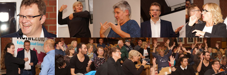 Moderation: Michael Mees Gebärdensprachdolmetschen: Magdalena Meisen, Sandra Wolfien (Skarabee) Schriftdolmetschen: Cornelia Krajewski, Mario Kaul Fotos: Ingo Langner (igraphics) |